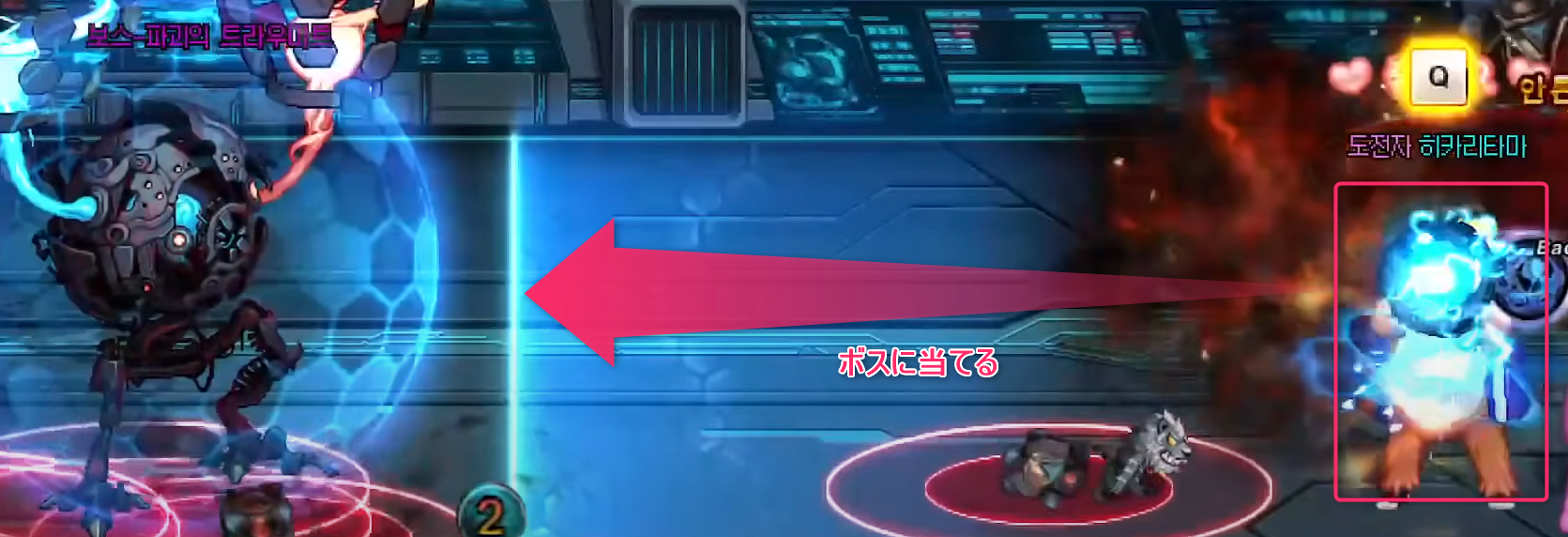 - 「自分のマークと同じ色の玉」は拾ってボスに当てる